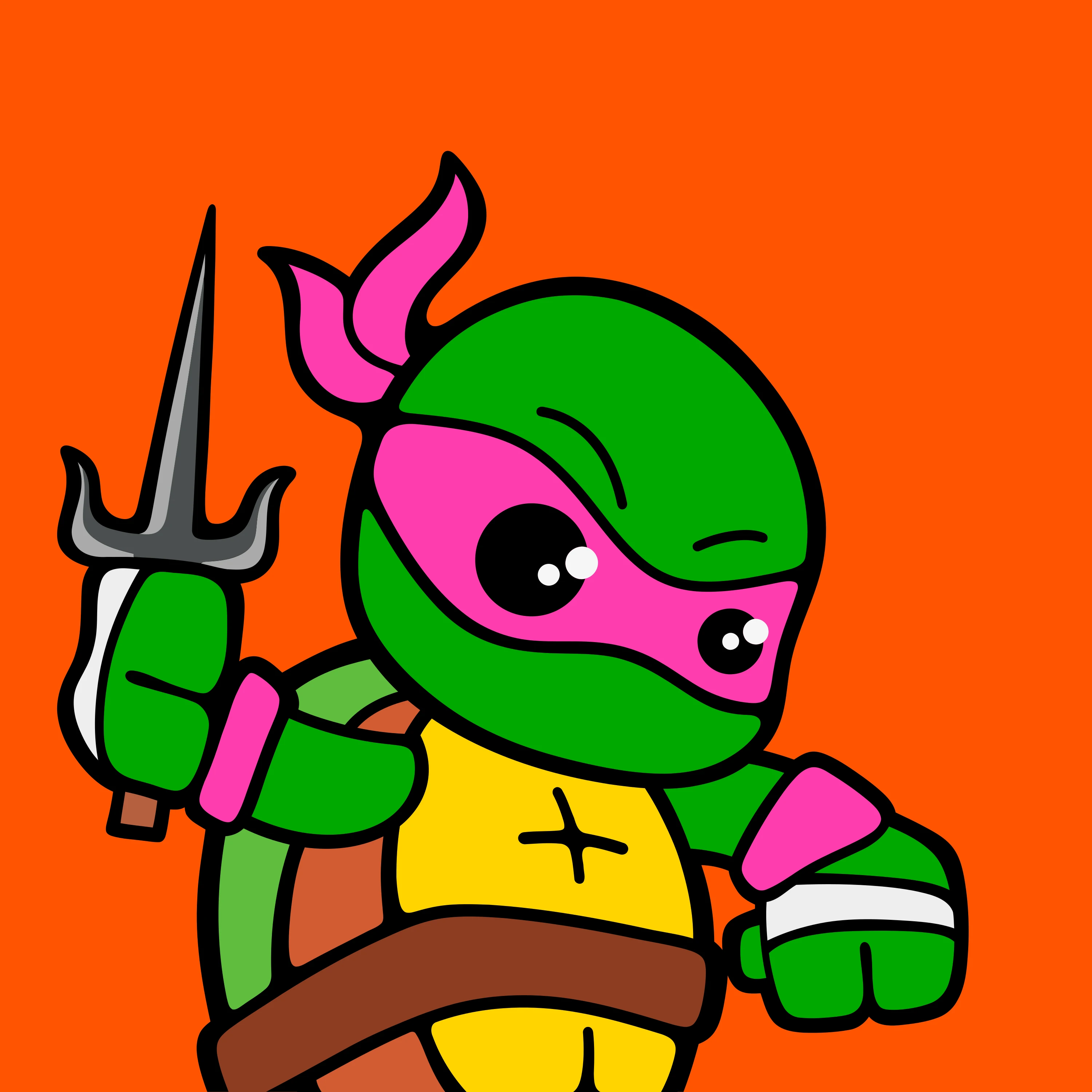 [{"ST0":"#8D3D21","ST1":"#D25B31","ST2":"#FFD400","ST3":"#FF3CAE","ST4":"#EDEDED","ST5":"#5EBD3E","ST6":"#00A900","type":"body","trait":"turtles-body____turtle-body-pink.svg","id":"d81a779eaa394f71a43d749721f4a6ecf236bf5fcab7200f2e033be18f93f56ai117"},{"type":"body","trait":"turtles-hand____sai.svg","id":"d81a779eaa394f71a43d749721f4a6ecf236bf5fcab7200f2e033be18f93f56ai136"},{"ST1":"#FF3CAE","ST2":"#00A900","type":"head","trait":"turtles-head____turtle-mask-pink.svg","id":"d81a779eaa394f71a43d749721f4a6ecf236bf5fcab7200f2e033be18f93f56ai141"},{"type":"head","trait":"turtles-face____glossy-eyes.svg","id":"d81a779eaa394f71a43d749721f4a6ecf236bf5fcab7200f2e033be18f93f56ai125"}]