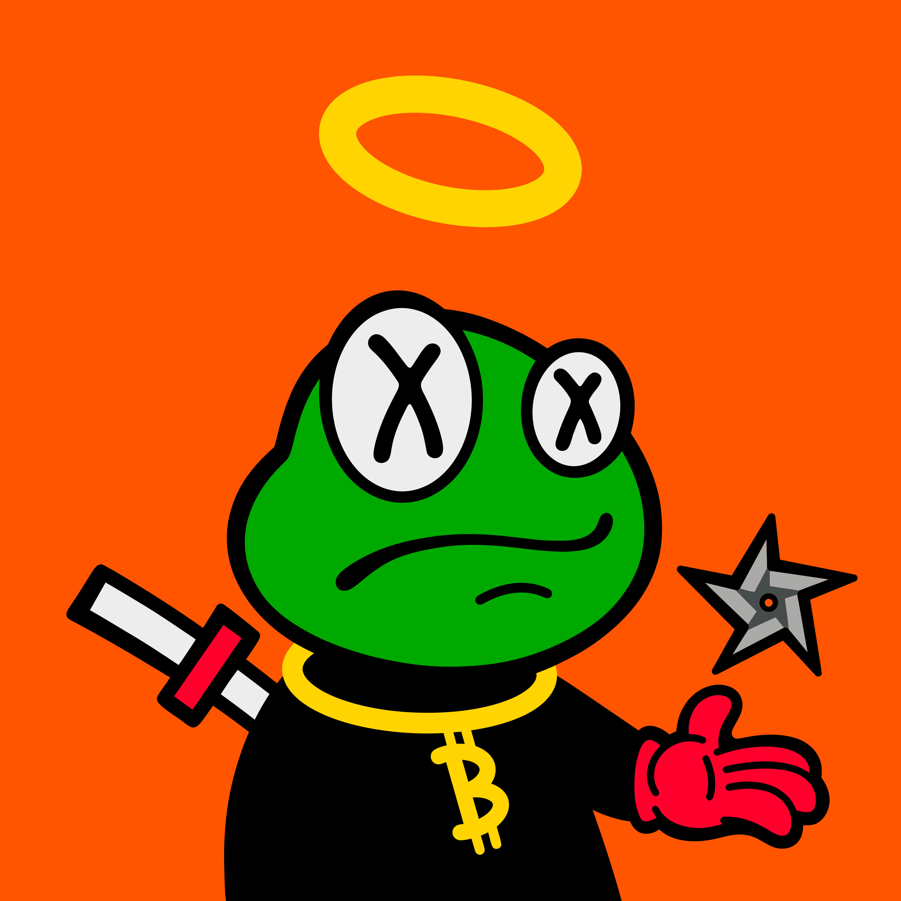 [{"ST0":"#000000","ST1":"#EDEDED","ST2":"#FF002C","type":"body","trait":"back-accessories____ninjato-white-red.svg","id":"840a103adbc9adb3202d53477fcb0039d5e1935f6f20b91d3e7bbe7fa3a1e1a1i2"},{"ST0":"#000000","ST1":"#000000","type":"body","trait":"weapon-body____weapon-body-blackout.svg","id":"d81a779eaa394f71a43d749721f4a6ecf236bf5fcab7200f2e033be18f93f56ai148"},{"ST1":"#000000","ST2":"#FF002C","type":"body","trait":"hands-weapons____shuriken-red.svg","id":"840a103adbc9adb3202d53477fcb0039d5e1935f6f20b91d3e7bbe7fa3a1e1a1i92"},{"type":"body","trait":"shinobi-belt____btc-necklace.svg","id":"d81a779eaa394f71a43d749721f4a6ecf236bf5fcab7200f2e033be18f93f56ai25"},{"ST0":"#00A900","ST1":"#000000","type":"head","trait":"frog-head____frog-head.svg","id":"840a103adbc9adb3202d53477fcb0039d5e1935f6f20b91d3e7bbe7fa3a1e1a1i69"},{"type":"head","trait":"frog-mouth____bored-frog.svg","id":"840a103adbc9adb3202d53477fcb0039d5e1935f6f20b91d3e7bbe7fa3a1e1a1i72"},{"type":"head","trait":"frog-eyes____dead-frog-eyes.svg","id":"840a103adbc9adb3202d53477fcb0039d5e1935f6f20b91d3e7bbe7fa3a1e1a1i63"},{"type":"hat","holiday_swap":"true","trait":"top-of-head____halo.svg","id":"d81a779eaa394f71a43d749721f4a6ecf236bf5fcab7200f2e033be18f93f56ai78"}]