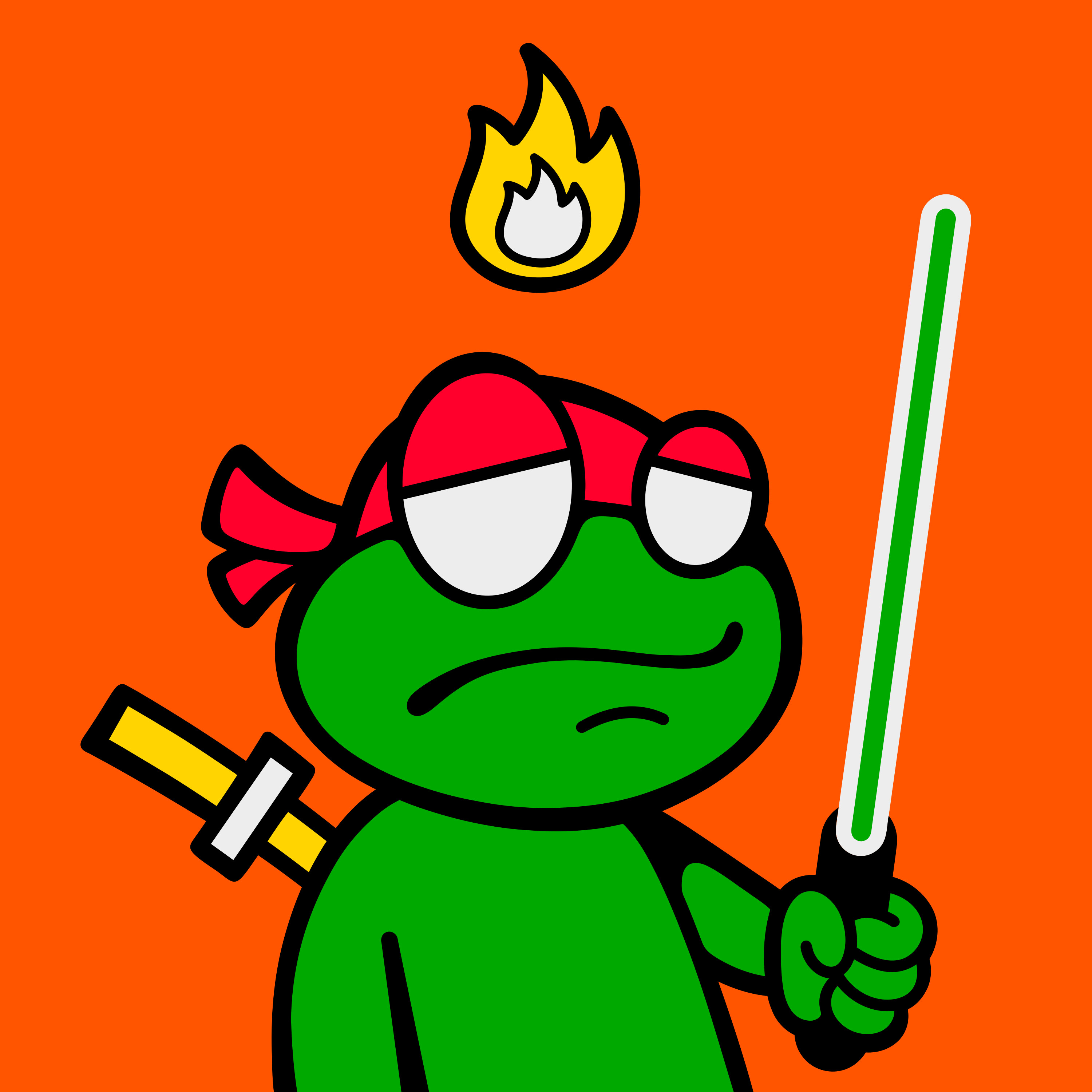 [{"ST0":"#000000","ST1":"#FFD400","ST2":"#EDEDED","type":"body","trait":"back-accessories____ninjato-yellow.svg","id":"840a103adbc9adb3202d53477fcb0039d5e1935f6f20b91d3e7bbe7fa3a1e1a1i2"},{"ST0":"#000000","ST1":"#00A900","type":"body","trait":"weapon-body____weapon-body-green.svg","id":"d81a779eaa394f71a43d749721f4a6ecf236bf5fcab7200f2e033be18f93f56ai148"},{"ST2":"#00A900","type":"body","trait":"hands-weapons____lightsaber-green.svg","id":"840a103adbc9adb3202d53477fcb0039d5e1935f6f20b91d3e7bbe7fa3a1e1a1i87"},{"ST0":"#00A900","ST1":"#000000","type":"head","trait":"frog-head____frog-head.svg","id":"840a103adbc9adb3202d53477fcb0039d5e1935f6f20b91d3e7bbe7fa3a1e1a1i69"},{"type":"head","trait":"frog-mouth____bored-frog.svg","id":"840a103adbc9adb3202d53477fcb0039d5e1935f6f20b91d3e7bbe7fa3a1e1a1i72"},{"ST0":"#FF002C","type":"head","trait":"frog-eyes____headband-red.svg","id":"840a103adbc9adb3202d53477fcb0039d5e1935f6f20b91d3e7bbe7fa3a1e1a1i66"},{"type":"hat","holiday_swap":"true","trait":"top-of-head____yellow-flame.svg","id":"d81a779eaa394f71a43d749721f4a6ecf236bf5fcab7200f2e033be18f93f56ai110"}]