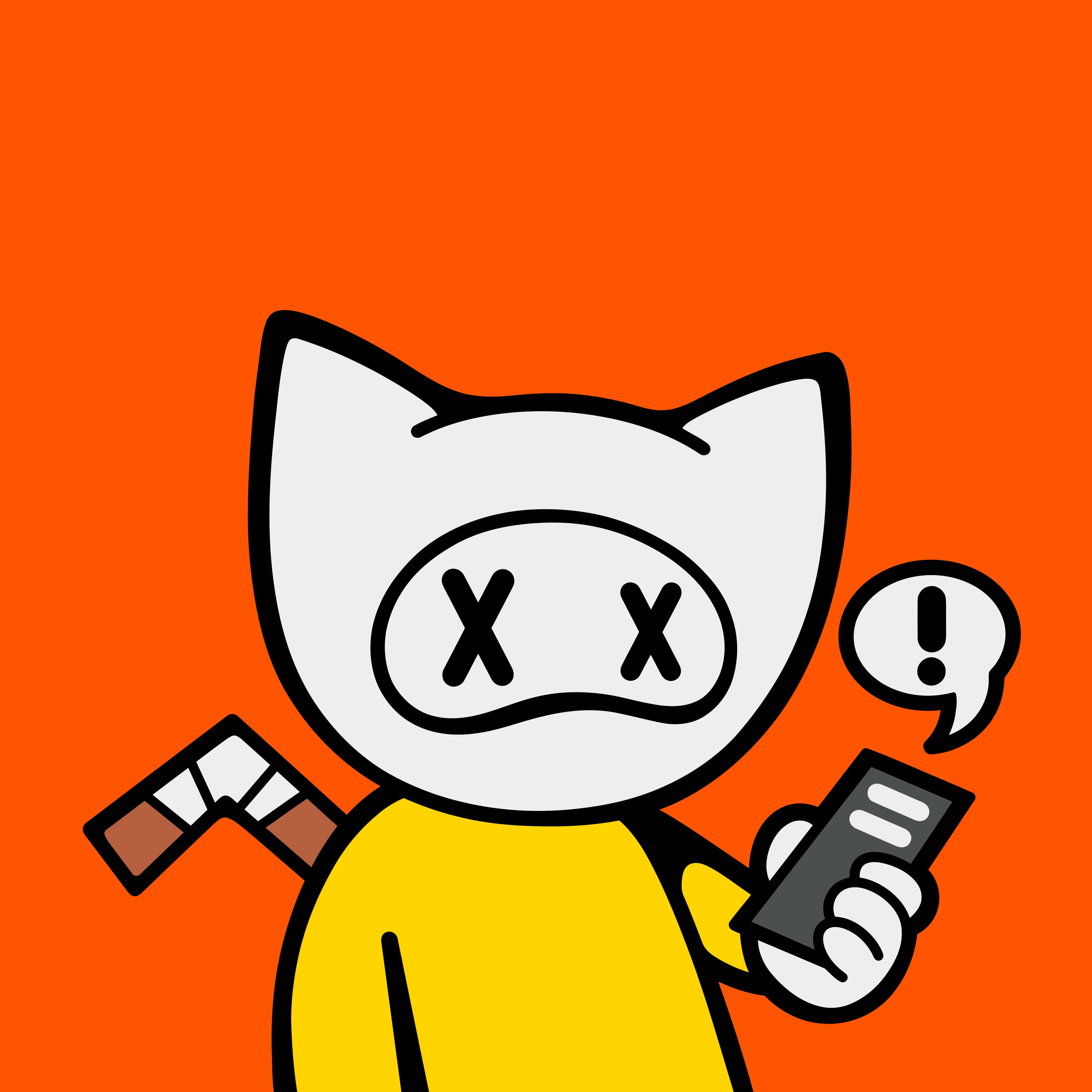 [{"type":"body","trait":"back-accessories____hockey-stick.svg","id":"840a103adbc9adb3202d53477fcb0039d5e1935f6f20b91d3e7bbe7fa3a1e1a1i1"},{"ST0":"#000000","ST1":"#FFD400","type":"body","trait":"weapon-body____weapon-body-yellow.svg","id":"d81a779eaa394f71a43d749721f4a6ecf236bf5fcab7200f2e033be18f93f56ai148"},{"ST1":"#EDEDED","type":"body","trait":"hands-weapons____push-notification-white.svg","id":"d81a779eaa394f71a43d749721f4a6ecf236bf5fcab7200f2e033be18f93f56ai156"},{"ST0":"#EDEDED","ST1":"#000000","type":"head","trait":"cat-head____cat-head-white.svg","id":"840a103adbc9adb3202d53477fcb0039d5e1935f6f20b91d3e7bbe7fa3a1e1a1i29"},{"ST0":"#000000","ST1":"#EDEDED","ST3":"#000000","type":"head","trait":"cat-eyes____dead-cat-eyes-white.svg","id":"840a103adbc9adb3202d53477fcb0039d5e1935f6f20b91d3e7bbe7fa3a1e1a1i23"}]