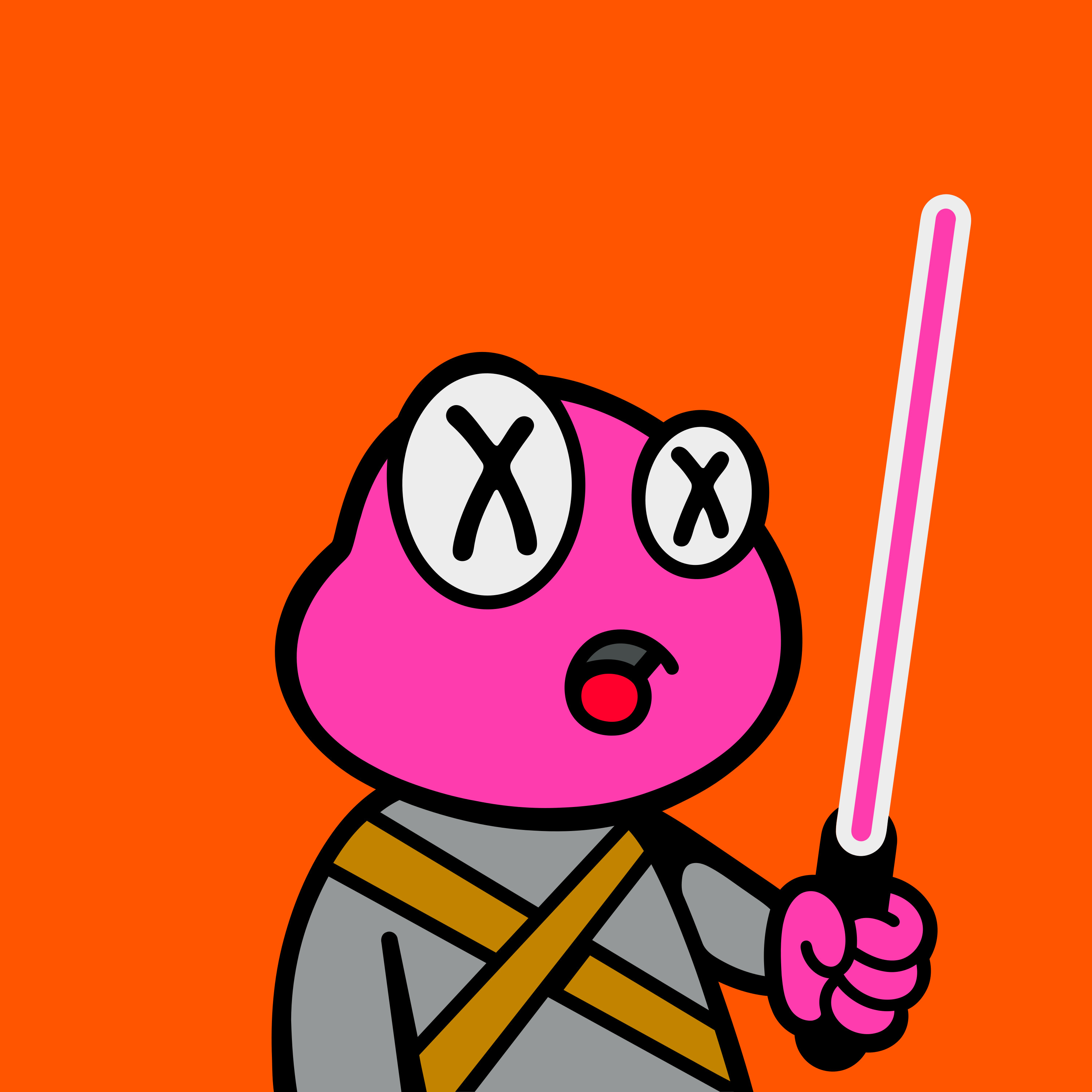 [{"ST0":"#000000","ST1":"#959898","type":"body","trait":"weapon-body____weapon-body-gray.svg","id":"d81a779eaa394f71a43d749721f4a6ecf236bf5fcab7200f2e033be18f93f56ai148"},{"ST0":"#C18300","ST1":"#000000","type":"body","trait":"shinobi-belt____shinobi-belt-double-fawn.svg","id":"d81a779eaa394f71a43d749721f4a6ecf236bf5fcab7200f2e033be18f93f56ai27"},{"ST2":"#FF3CAE","type":"body","trait":"hands-weapons____lightsaber-pink.svg","id":"840a103adbc9adb3202d53477fcb0039d5e1935f6f20b91d3e7bbe7fa3a1e1a1i87"},{"ST0":"#FF3CAE","ST1":"#000000","type":"head","trait":"frog-head____pink-frog-head.svg","id":"840a103adbc9adb3202d53477fcb0039d5e1935f6f20b91d3e7bbe7fa3a1e1a1i69"},{"type":"head","trait":"frog-mouth____scared-frog.svg","id":"840a103adbc9adb3202d53477fcb0039d5e1935f6f20b91d3e7bbe7fa3a1e1a1i75"},{"type":"head","trait":"frog-eyes____dead-frog-eyes.svg","id":"840a103adbc9adb3202d53477fcb0039d5e1935f6f20b91d3e7bbe7fa3a1e1a1i63"}]