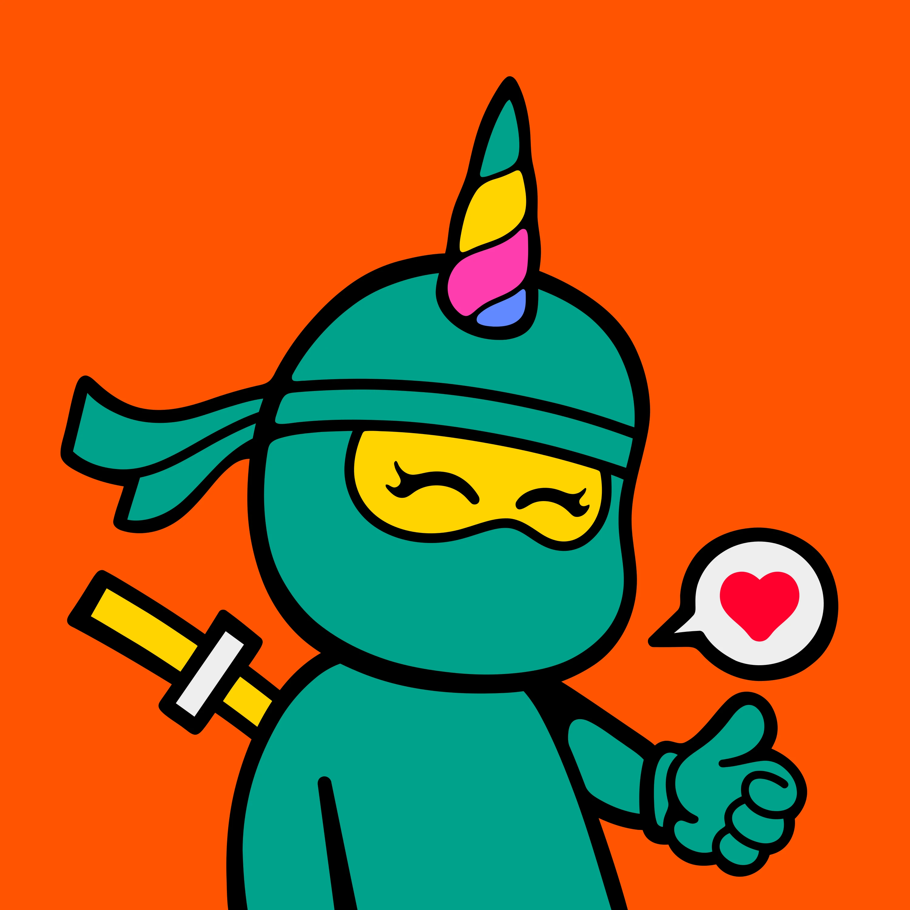 [{"ST0":"#000000","ST1":"#FFD400","ST2":"#EDEDED","type":"body","trait":"back-accessories____ninjato-yellow.svg","id":"840a103adbc9adb3202d53477fcb0039d5e1935f6f20b91d3e7bbe7fa3a1e1a1i2"},{"ST0":"#000000","ST1":"#00A28A","type":"body","trait":"weapon-body____weapon-body-cyan.svg","id":"d81a779eaa394f71a43d749721f4a6ecf236bf5fcab7200f2e033be18f93f56ai148"},{"ST2":"#00A28A","type":"body","trait":"hands-weapons____heart-emoji-cyan.svg","id":"840a103adbc9adb3202d53477fcb0039d5e1935f6f20b91d3e7bbe7fa3a1e1a1i84"},{"ST0":"#00A28A","ST1":"#000000","type":"head","trait":"monomi-head____monomi-head-cyan.svg","id":"840a103adbc9adb3202d53477fcb0039d5e1935f6f20b91d3e7bbe7fa3a1e1a1i126"},{"ST0":"#00A28A","ST1":"#000000","type":"head","trait":"monomi-headband____monomi-headband-cyan.svg","id":"840a103adbc9adb3202d53477fcb0039d5e1935f6f20b91d3e7bbe7fa3a1e1a1i129"},{"type":"head","trait":"monomi-face____lashes.svg","id":"840a103adbc9adb3202d53477fcb0039d5e1935f6f20b91d3e7bbe7fa3a1e1a1i118"},{"type":"head","holiday_swap":"true","trait":"top-of-head____unicorn.svg","id":"d81a779eaa394f71a43d749721f4a6ecf236bf5fcab7200f2e033be18f93f56ai105"}]